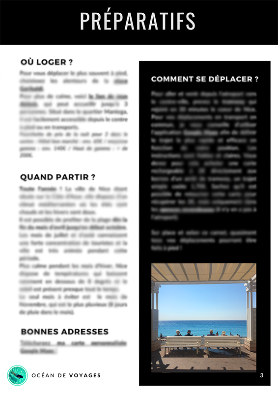 Vous souhaitez partir à Nice mais… Vous ne savez pas par où commencer ? Vous avez peur de manquer des incontournables ? Vous n’avez pas le temps de préparer minutieusement votre séjour ? Téléchargez votre carnet de voyage digital pour un séjour clé en main !